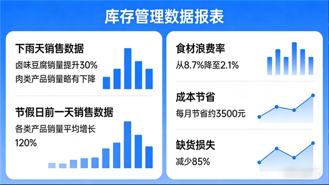 据此调整备货后,食材浪费率从8.7%降至2.1%,每月节省约3500元,缺货损失减少85%。